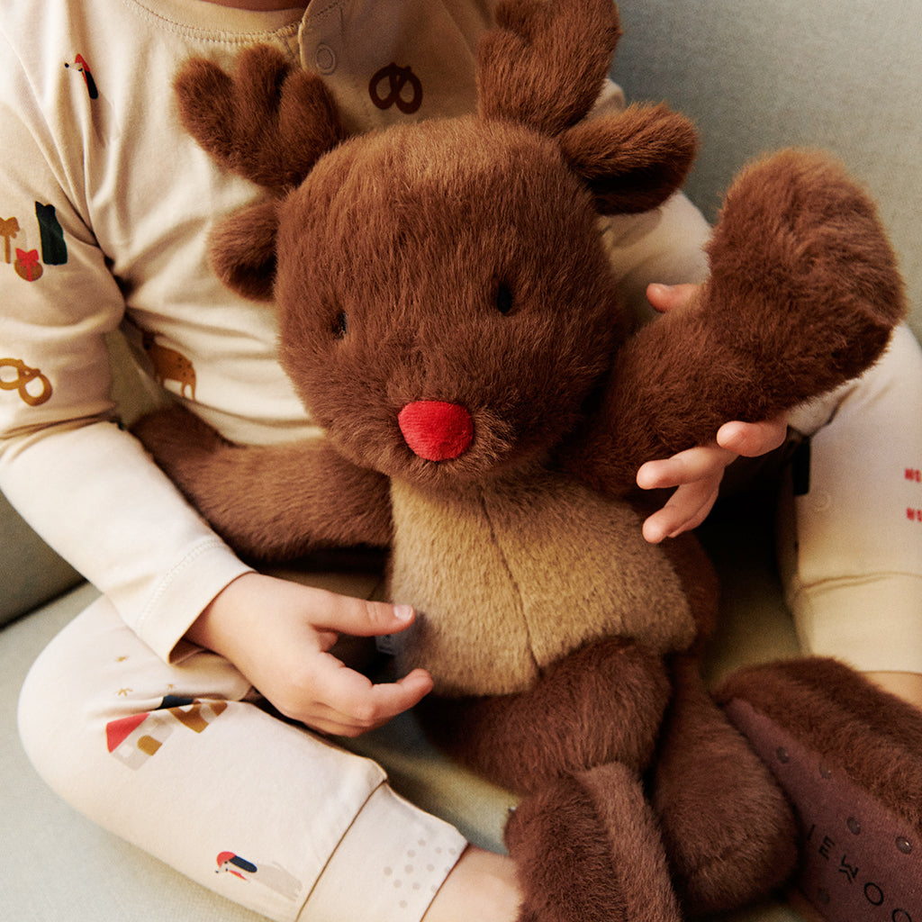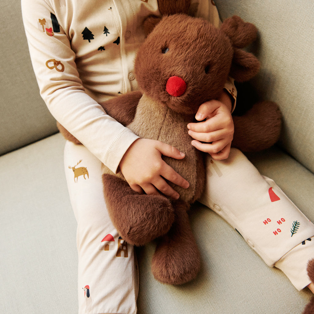 Dieser kuschelige Begleiter in Form eines süssen Rentiers und aus superweichen GRS-zertifizierten Materialien gefertigt, sorgt dafür, dass sich die Kleinen bei den Abenteuern im Dezember warm und während der Gutenachtgeschichten geborgen fühlen. Perfekt als erstes Weihnachtsgeschenk wird der BERTO Rentier-Teddyzu einem geliebten Freund deines Kindes, während es heranwächst.
