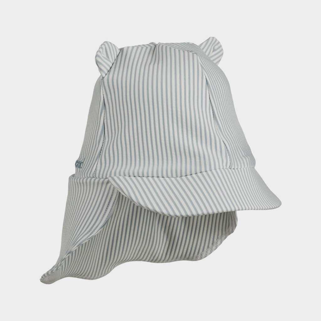Niedlicher, praktischer Sonnenhut für Babies aus recyceltem Polyester und dem gleichen dehnbaren Stoff wie der LIEWOOD Badebekleidung. Für jedem Meter des Badebekleidungsstoffes wurden 35 PET-Plastikflaschen wiederverwendet und zu Garn gesponnen.