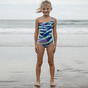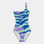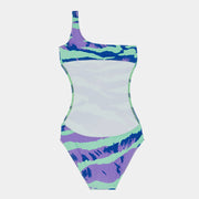 Sia ist ein einteiliger Badeanzug von Finger In The Nose, der mit seinem One-Shoulder-Oberteil und seinem farbenfrohen Allover-Grafikdruck ein echter Hingucker ist.