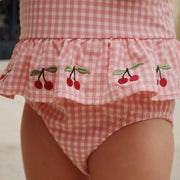 Badeanzug aus strukturiertem Seersuckerstoff mit Schösschen-Taille.