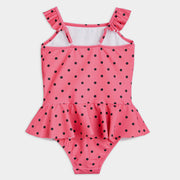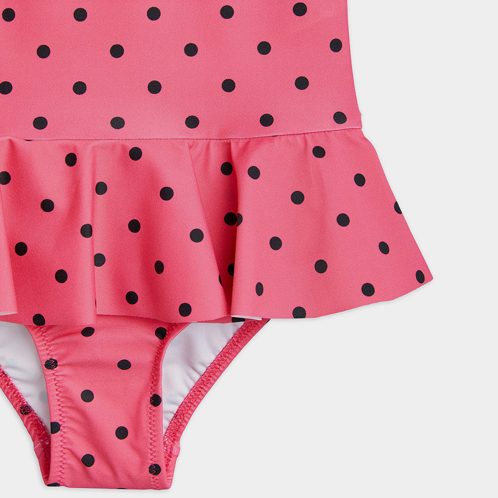 Verspielt-knalliges Badekleid mit Polka Dots und SPF50+ Schutz. Die Bademode von Mini Rodini ist aus recyceltem Kunststoff - beispielsweise aus treibenden Fischernetzen - und trägt somit zur Säuberung der Ozeane bei, hilft die Meeresfauna zu schützen und gleichzeitig Ressourcen zu sparen..