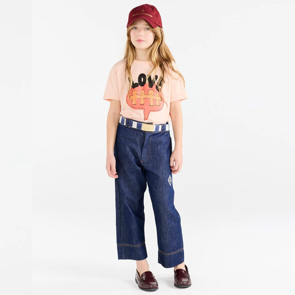 Diese braune Mütze mit goldenem Logo setzt ein markantes Statement in modernen Kinderkollektionen.