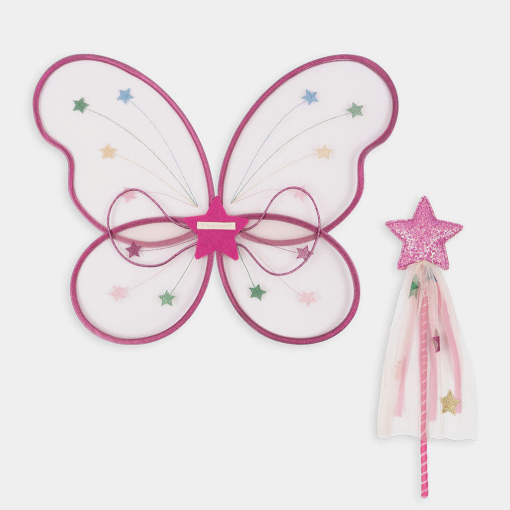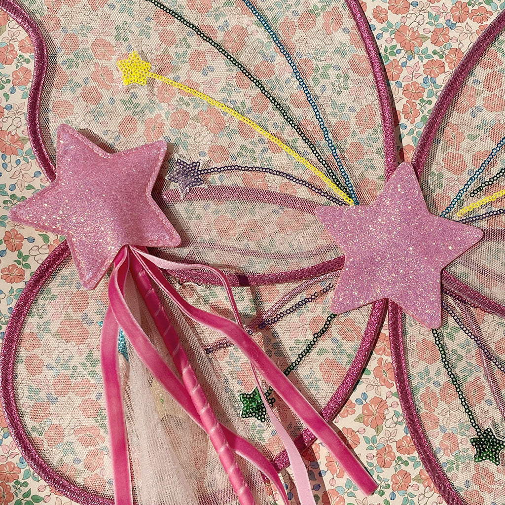 Feenkostümset mit Flügeln und einem Zauberstab, um etwas Magie zu verbreiten.