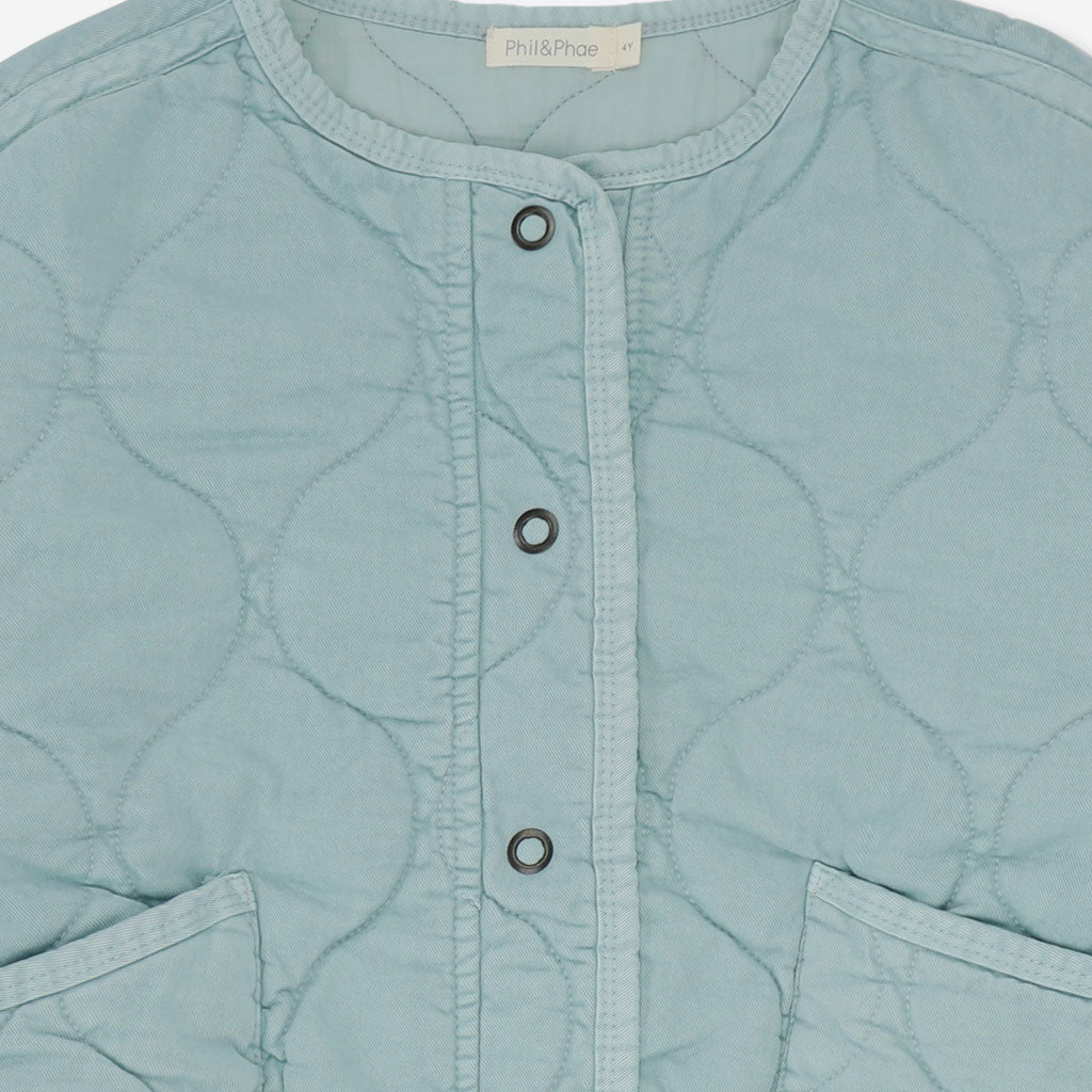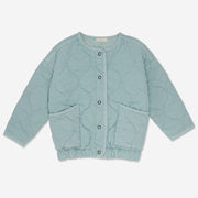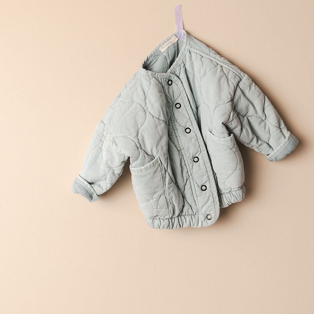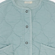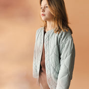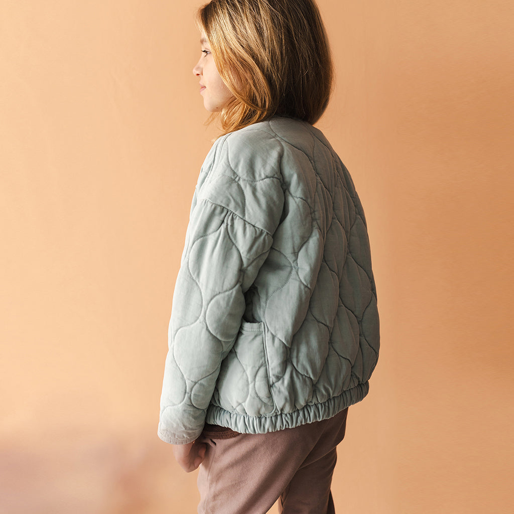 Weiche Steppjacke aus Baumwolle/Lyocell-Twill, gefüttert mit Bio-Baumwolle. Die Jacke schliesst mit Druckknöpfen und hat zwei Taschen auf der Vorderseite und einen Gummizug am unteren Saum für eine Bomber-Passform.