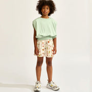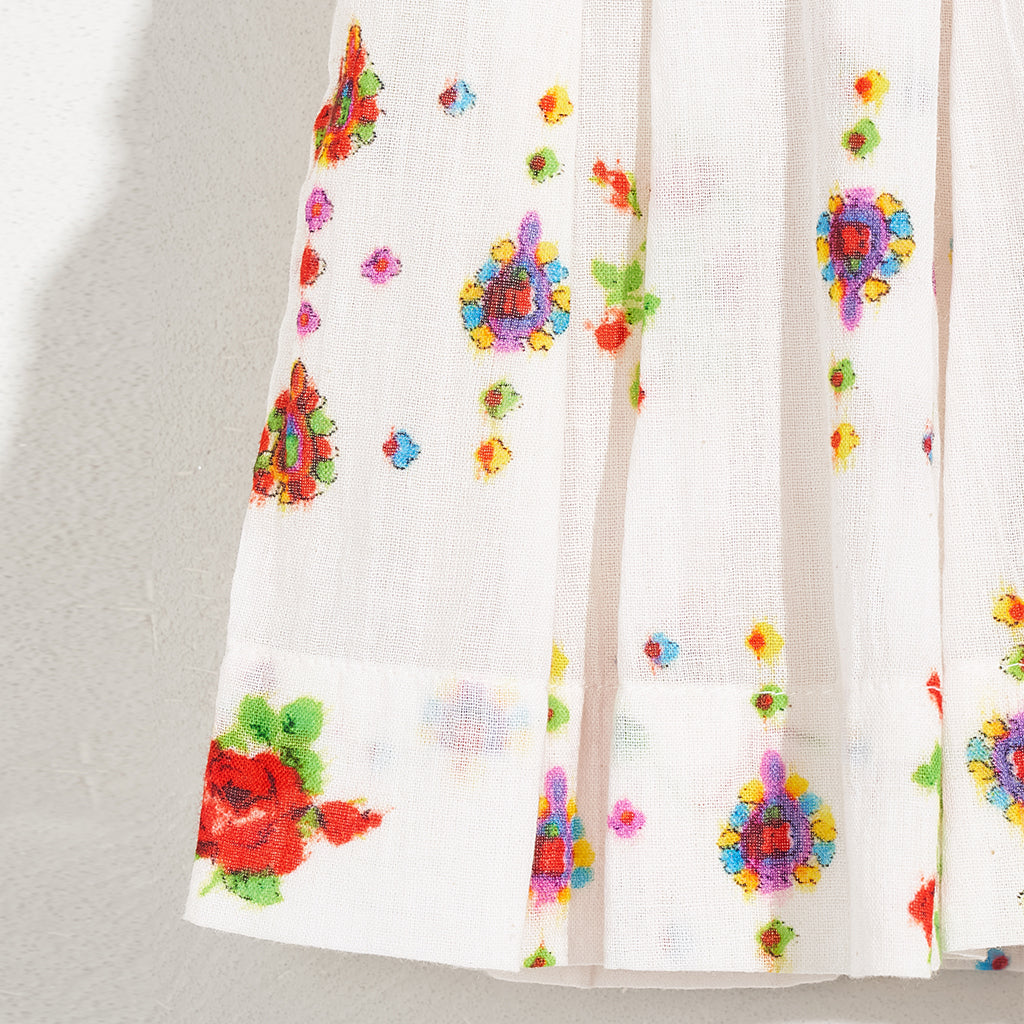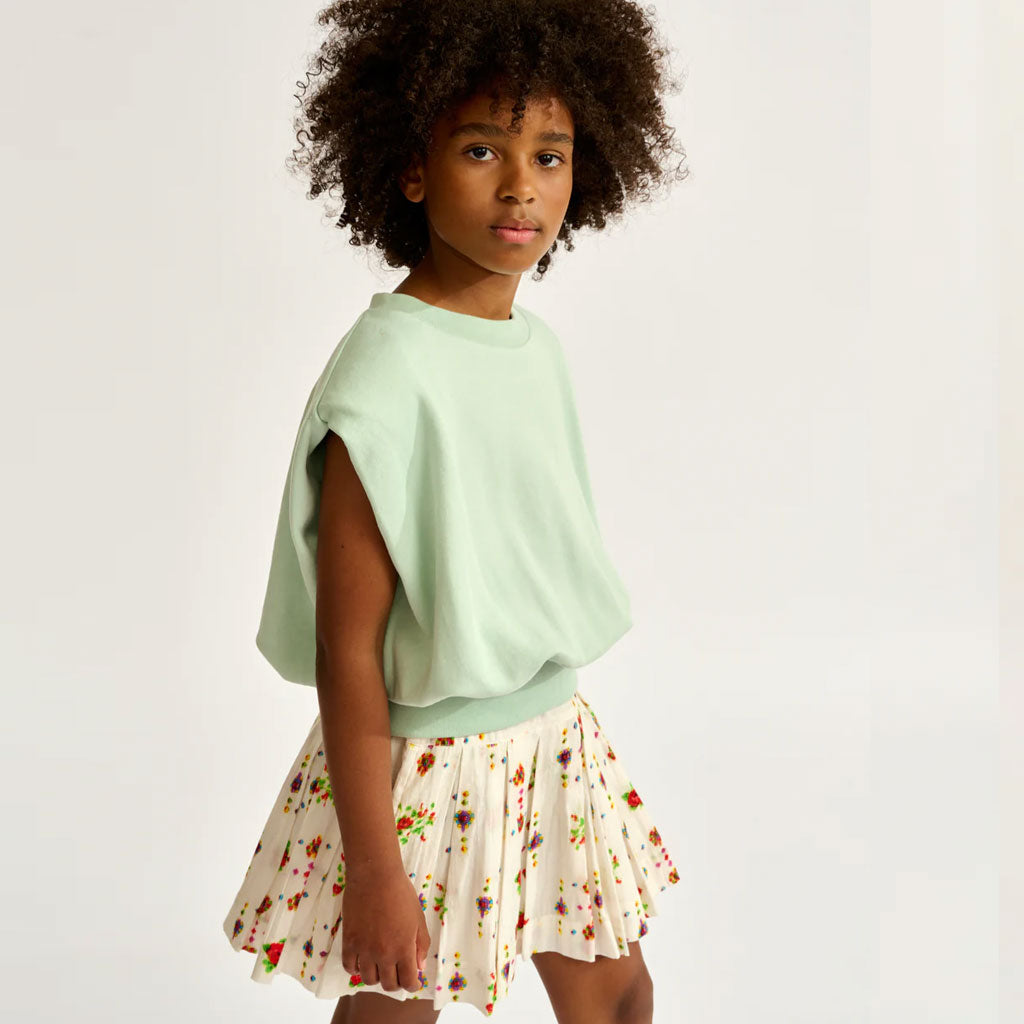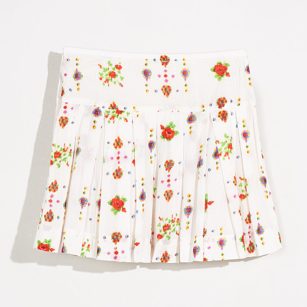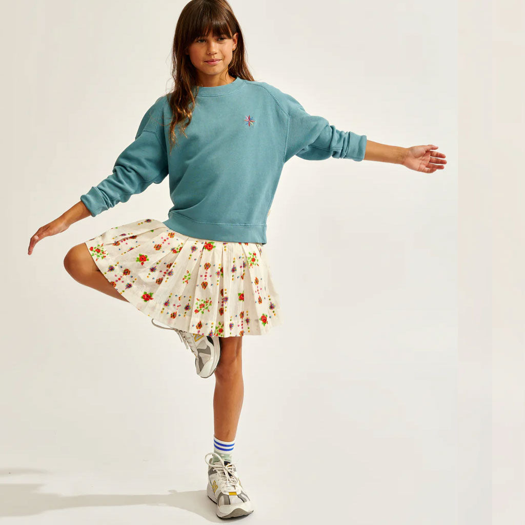 Die ausgestellte Silhouette und die breiten Falten des HAKA-Jupes von Bellerose machen ihn zu einem leicht zu tragenden Alltagsrock. Er ist aus reiner Baumwolle mit einem ethnisch inspirierten, mehrfarbigen Muster gefertigt und hat eine Minilänge, einen breiten Bund und eine fröhliche Ausstrahlung.