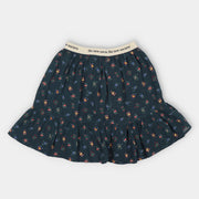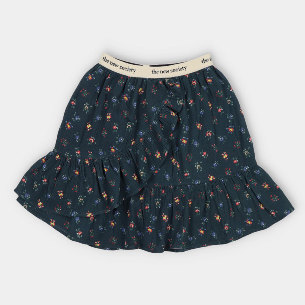 Der Minirock Moon passt perfekt zur Bluse Moon. Er hat eine asymmetrische, von rechts nach links verlaufende Rüsche und wird durch einen elastischen Bund mit dem Markennamen zusammengehalten.
