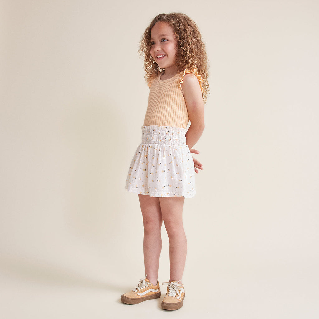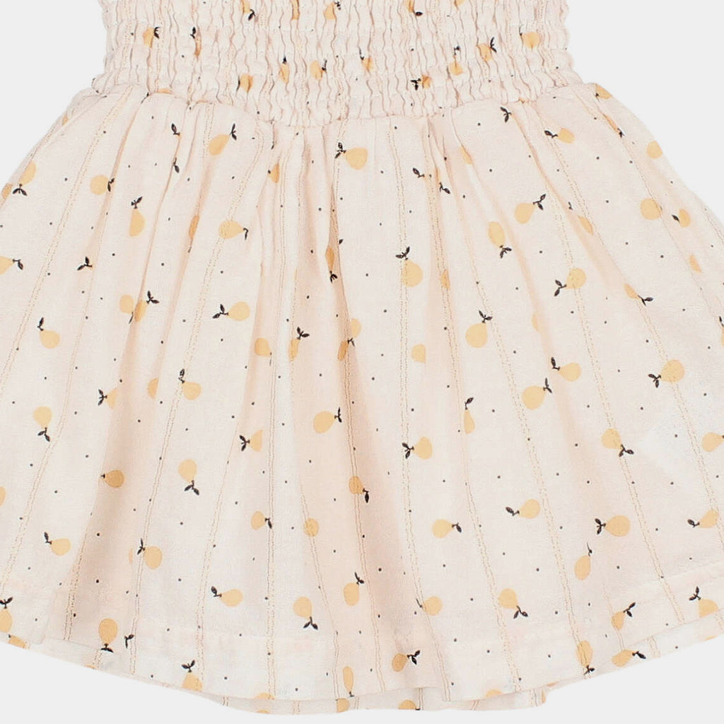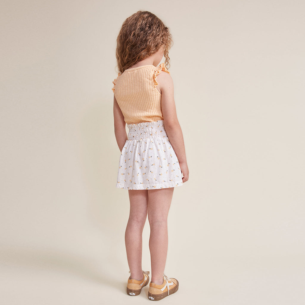 Luftiger Jupe mit süssem Birnendruck und elastischem Taillenbund.