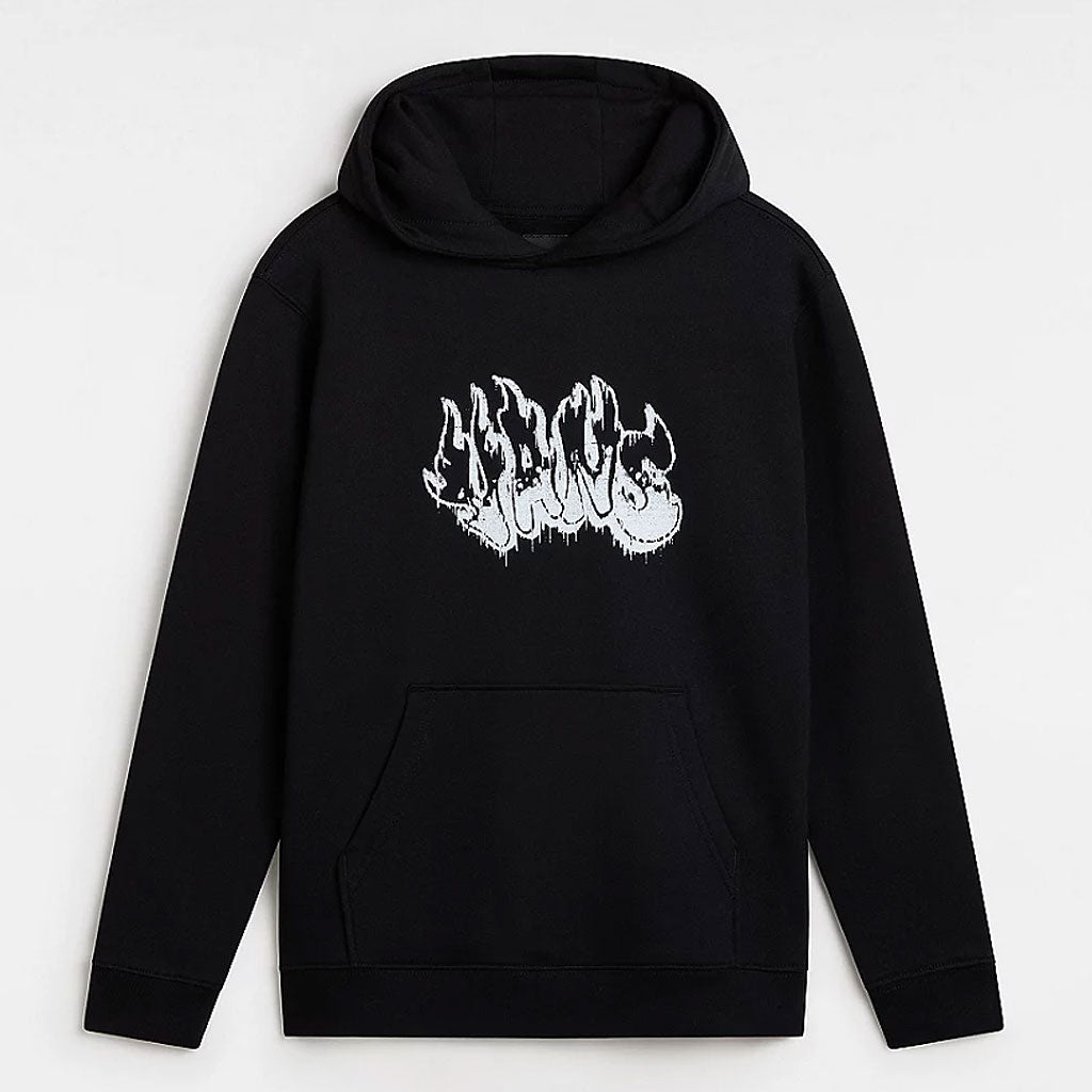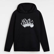 Schwarzer Fleece Hoodie mit Vans Graffiti vorne.