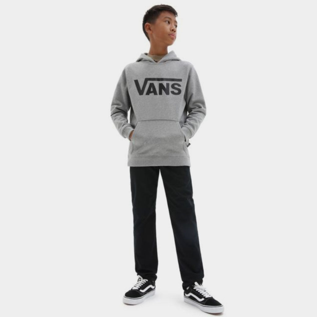 Der Vans Classic Kapuzenpullover für Kinder mit Kängurutasche und charakteristischer Logo-Grafik vorne besteht aus 60% Baumwolle und 40% Polyester-Fleece.