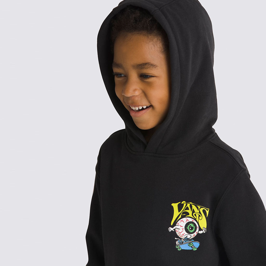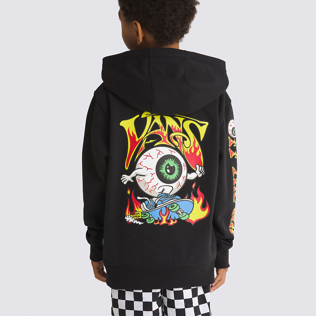 Schwarzer Vans Hoodie mit Eyeballie Print vorne und hinten.