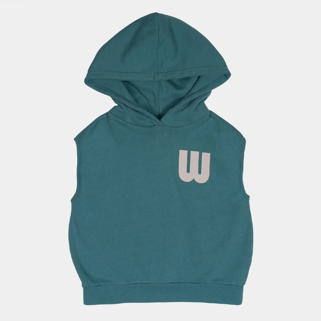 Cooler, petrolgrüner Wynken Hoodie ohne Ärmel aus Bio-Baumwolle.