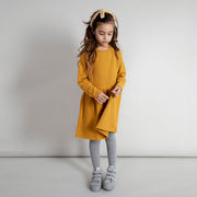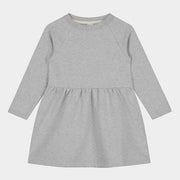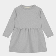 Dieses bequeme Kleid mit einer Länge knapp über dem Knie ist aus weichem Bio-Baumwollfleece. Es hat einen gerippten Rundhalsausschnitt, eine geraffte Taille und lange Ärmel. Das Logo ist auf der Rückseite, knapp unterhalb des Halses, aufgenäht.