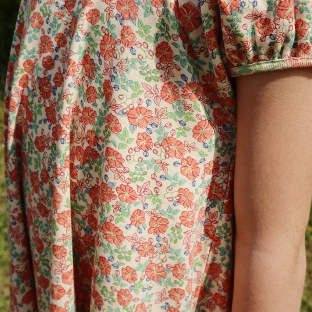 Romantisches, weiches Kleid aus Baumwolle mit Blumenprint und einer lockeren und bequemen Silhouette.