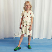 Zartes Sommerkleid mit kleinen Beeren. Hergestellt aus 100% GOTS-zertifizierter Bio-Baumwolle.
