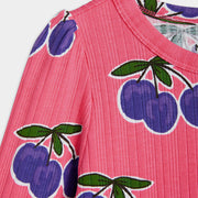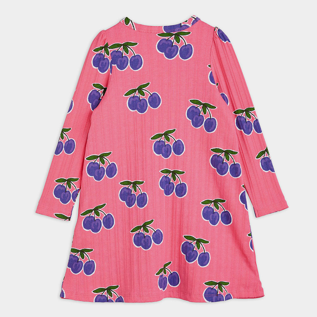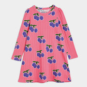 Knalliges, pinkes Kleid mit Multi Pflaumenaufdruck.