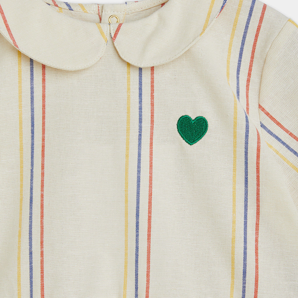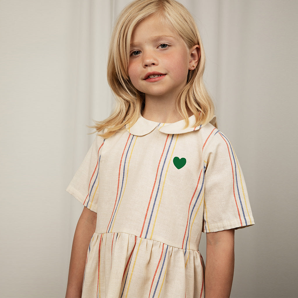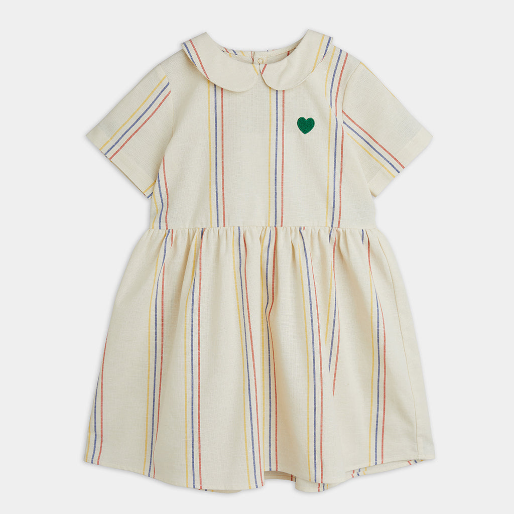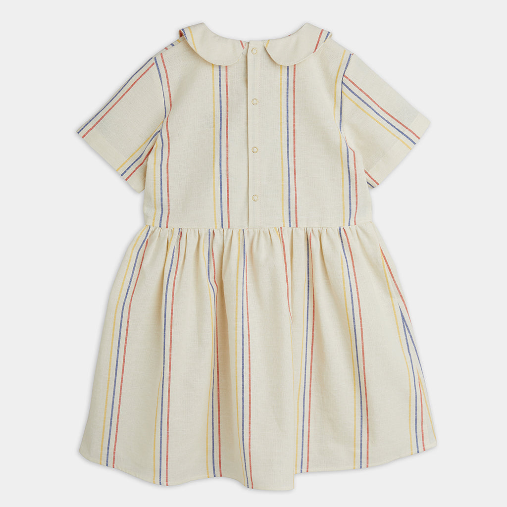 Sportlich-chices Sommerkleid aus zartem Baumwoll-Leinengemisch mit feinen Streifen und rundem Kragen.