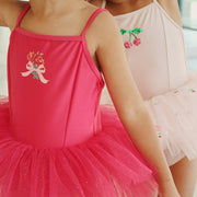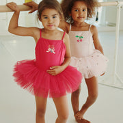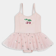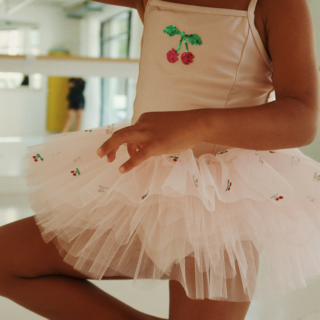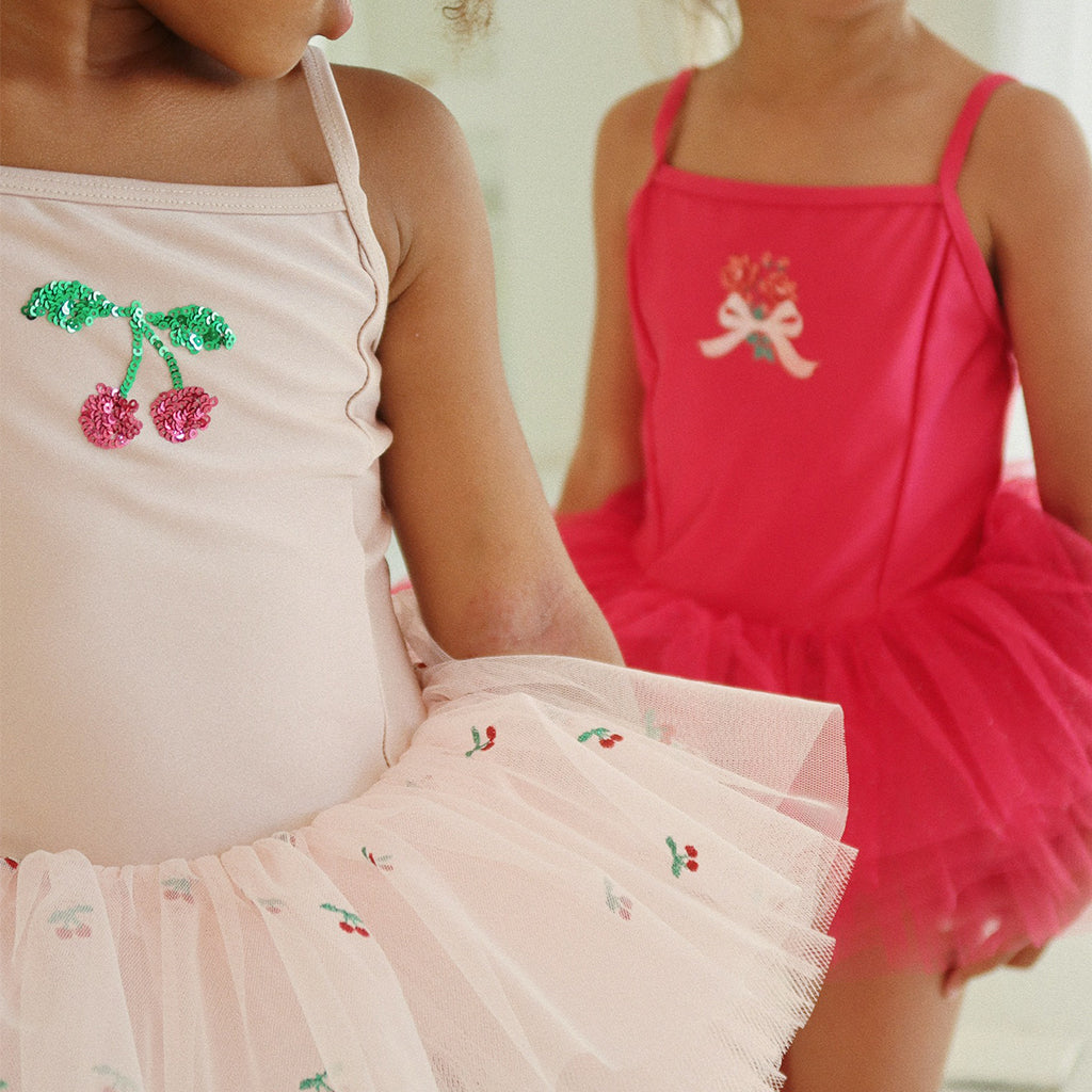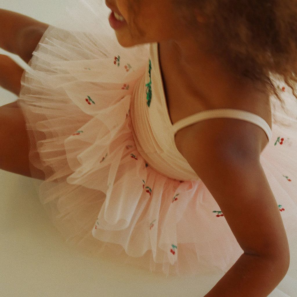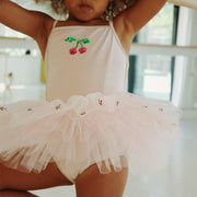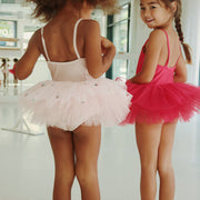 Klassisches Tutu-Kleid für kleine Ballerinas. Entworfen mit einem voluminösen Tüllrock, der an einem taillierten Anzug aus einem dehnbaren Stoff befestigt ist.