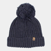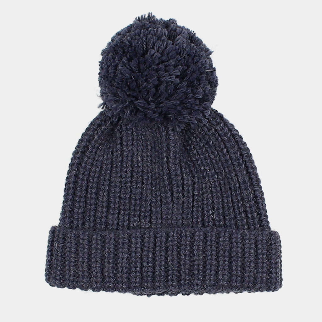 Weiche, blaue Trikotmütze mit Bommel.
