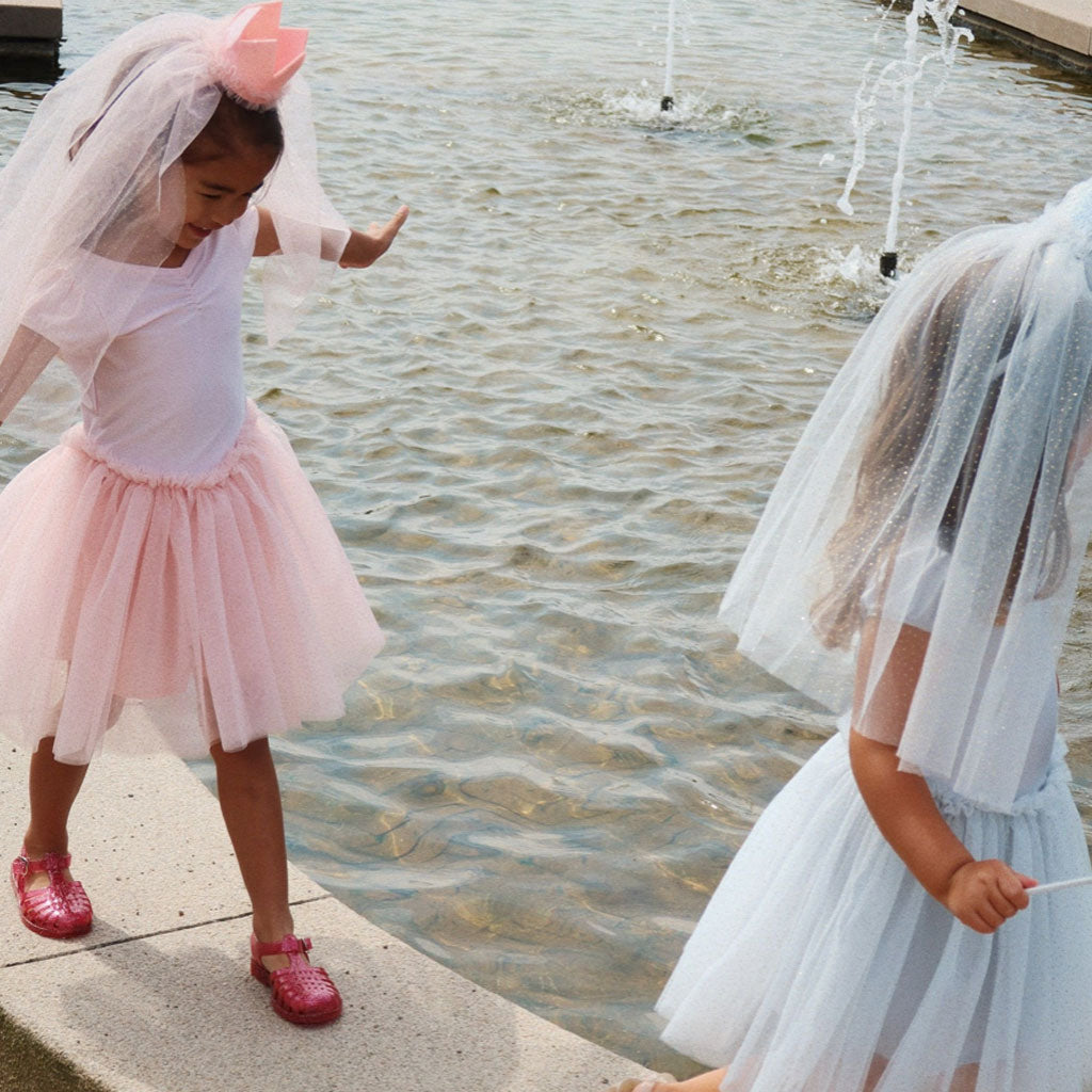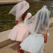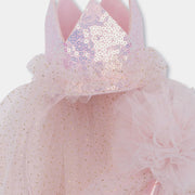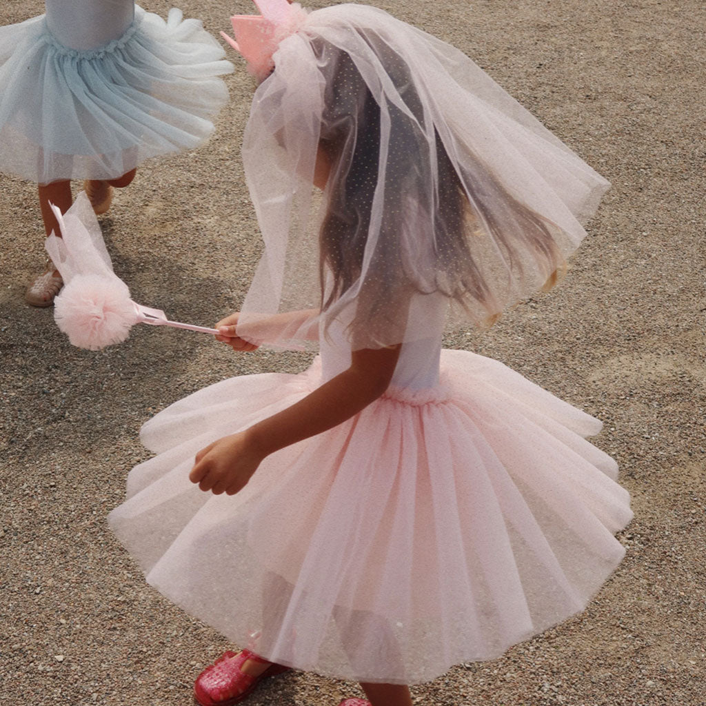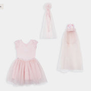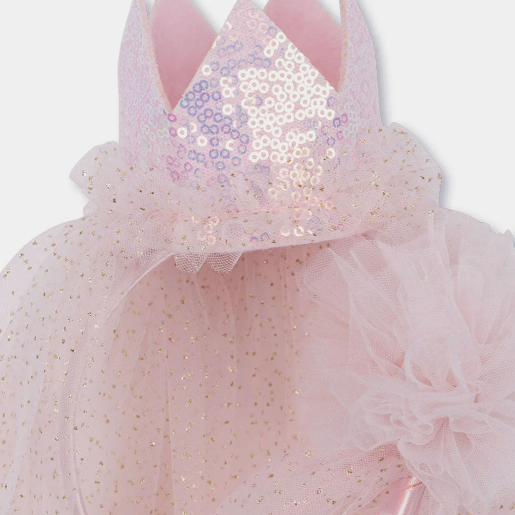 Ein Prinzessinnentraum wird wahr. Dieses Kostümset besteht aus einem Kleid, einem Zauberstab, einem Stirnband mit Krone und einem Schleier.