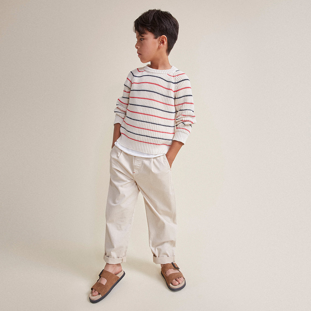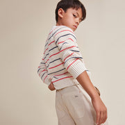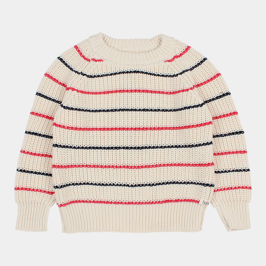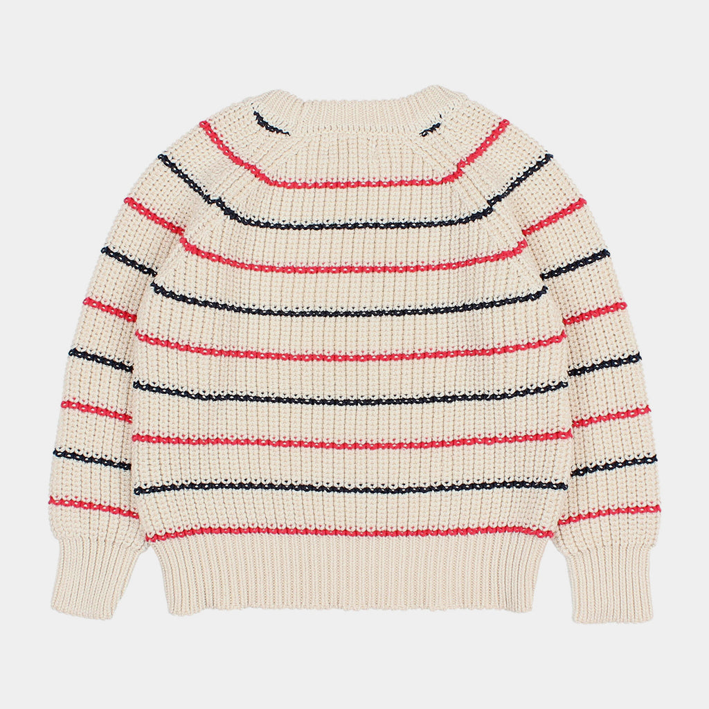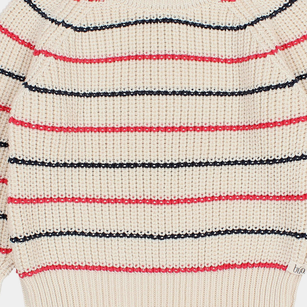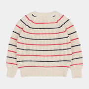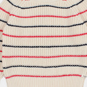 Gestreifter Strick-Pullover mit rundem Halsausschnitt und Raglanärmeln.