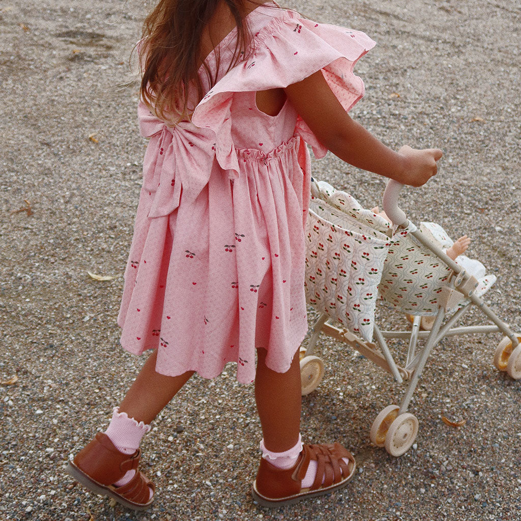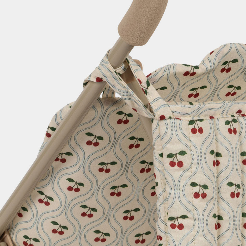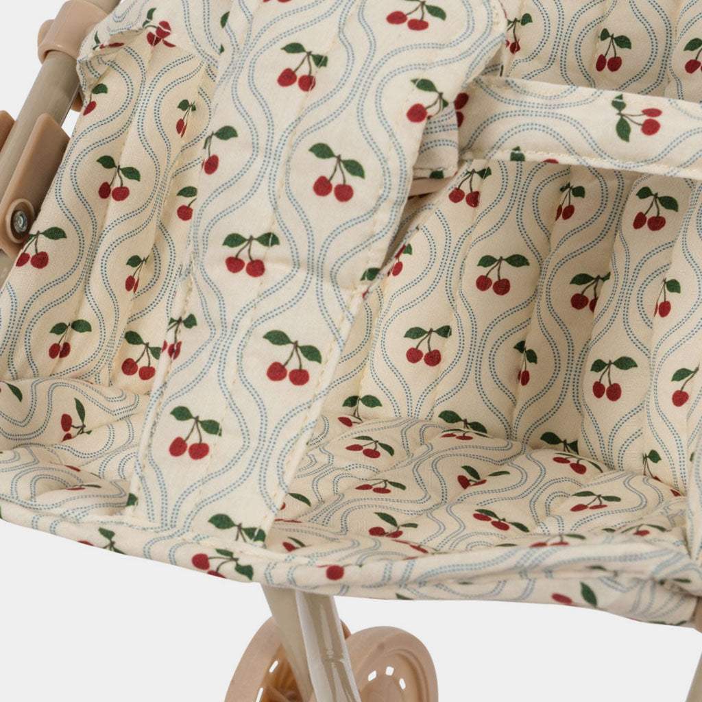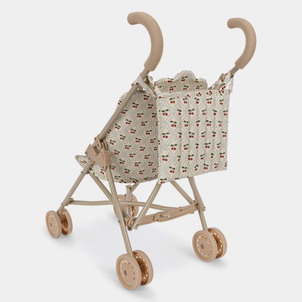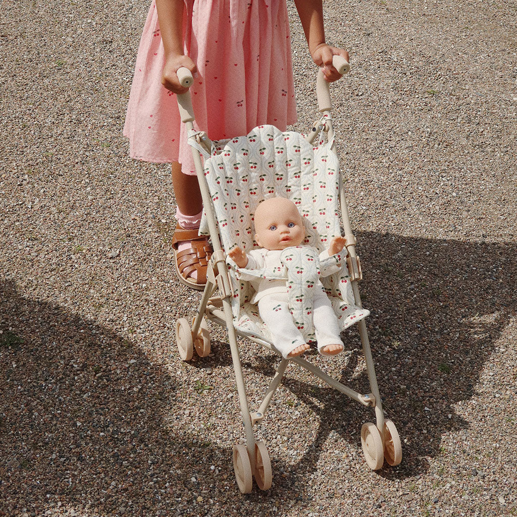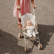 Super herziger Puppenwagen mit Gurt, Tragetasche und Doppelrädern an allen vier Beinen für zusätzliche Stabilität. Mit abnehmbarem Stoff aus 100 Prozent Bio-Baumwolle. Wird komplett montiert geliefert. Einfach zu falten und aufzubewahren. Der Rahmen besteht aus Eisen mit weichem EVA-Schaumstoff-Material an den Griffen.