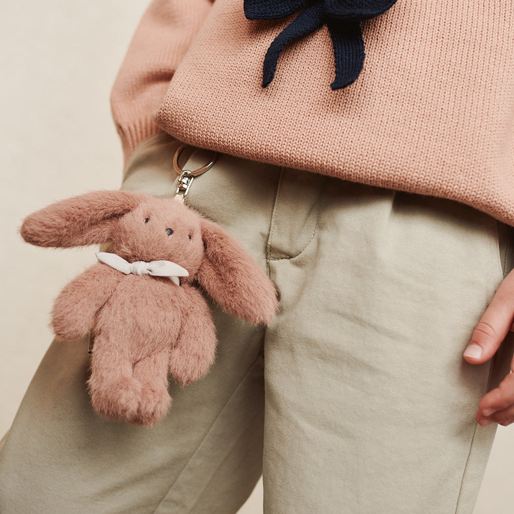 Der Kaninchen-Plüsch-Schlüsselanhänger Alfredo ist ein niedliches Accessoire für Kinder, um ihren Rucksack zu dekorieren und zu personalisieren – oder um der Wickeltasche eine weiche, verspielte Note zu verleihen.