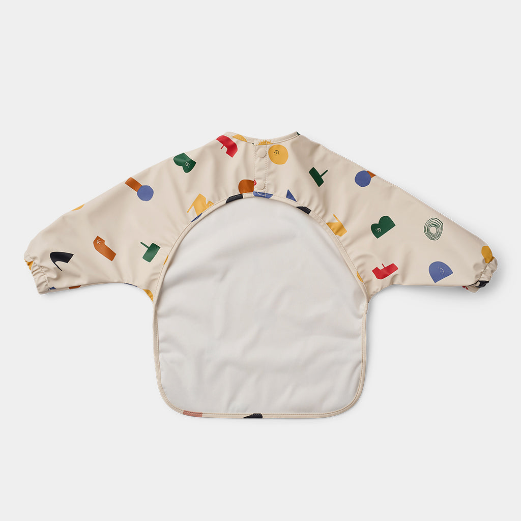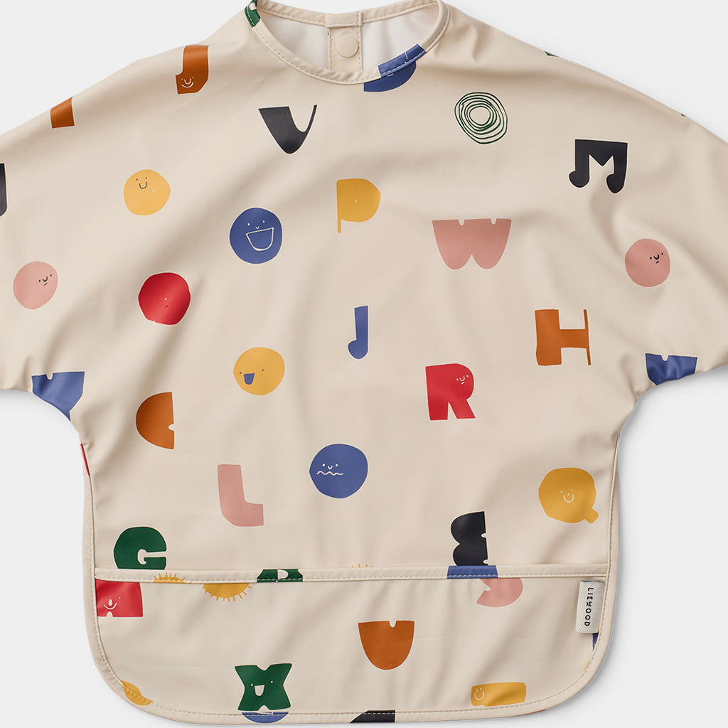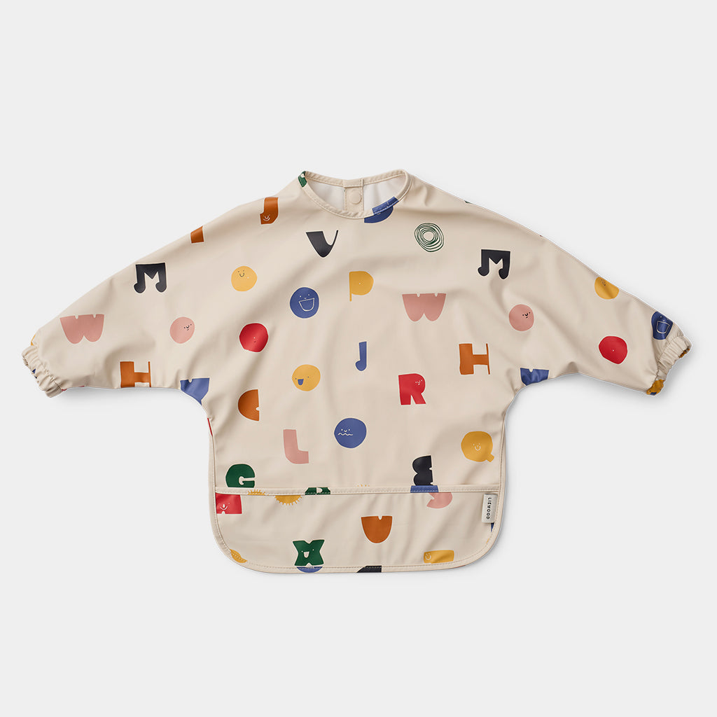Leichtes Ärmellätzchen für Babys und Kleinkinder, die lernen, selbstständig zu essen. Die elastischen Bündchen sorgen für eine perfekte Passform und die Große Vordertasche fängt verschüttetes Essen auf. Hergestellt aus strapazierfähigem, Recyceltem Polyester, ist das Ärmellätzchen leicht zu reinigen und kann für eine kompakte Aufbewahrung zu Hause oder unterwegs zusammengefaltet werden.