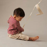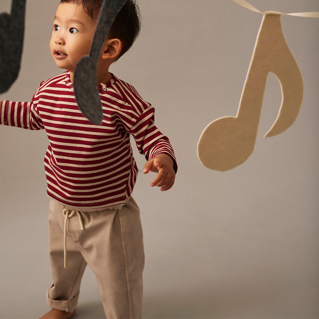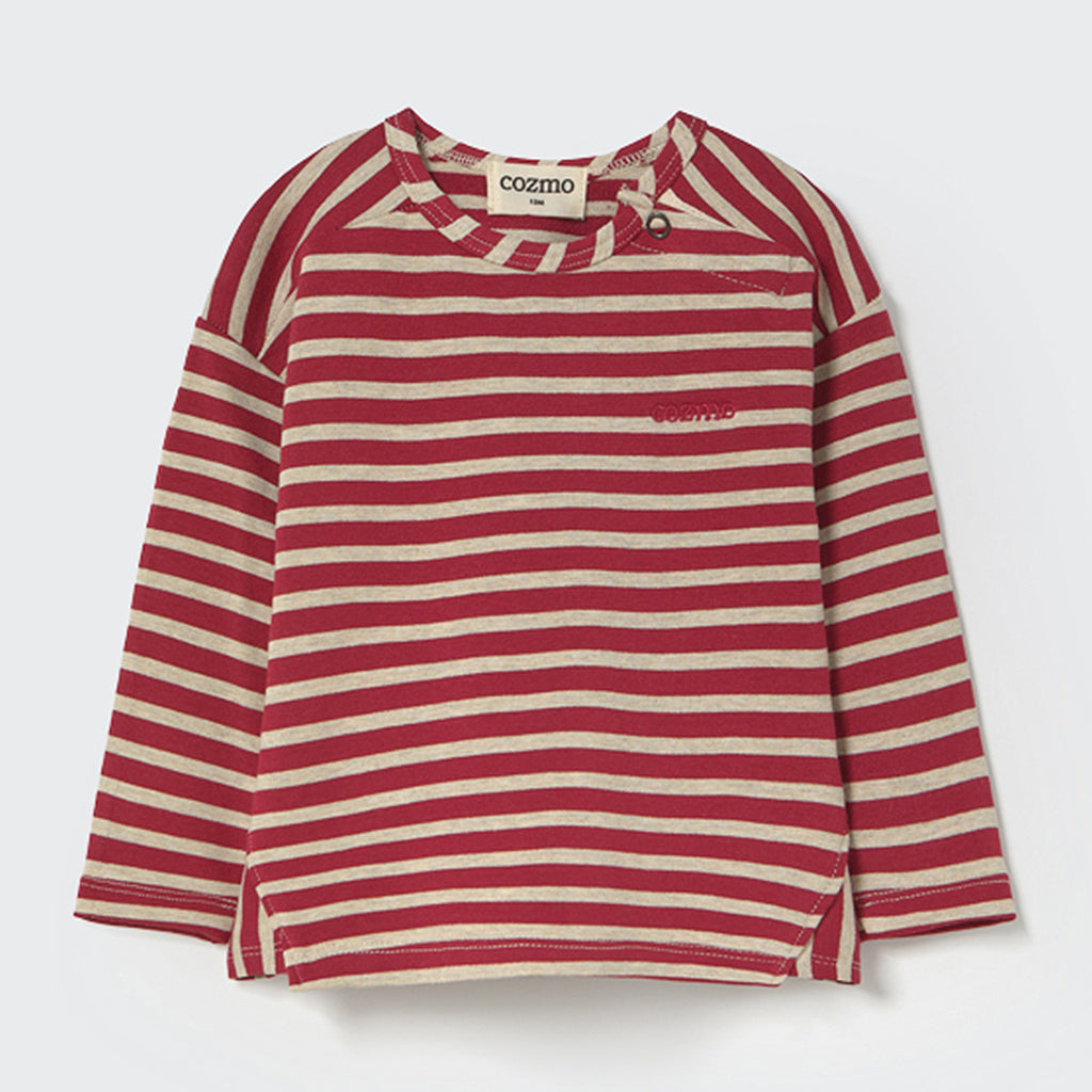 Dieses gestreifte Baby Shirt ist aus nachhaltiger, EcoVero-zertifizierter Viskose und dehnbarem Fleece gefertigt. Es hat einen Rundhalsausschnitt, überschnittene Schultern und lange Ärmel. Auf der Brust ist Cozmo aufgestickt. Dreieckige Einsätze an den Seiten zeigen vertikal angeordnete Streifen. Die gebürstete Innenseite sorgt für ein warmes, kuscheliges Tragegefühl den ganzen Tag lang. Es ist auch Teil unserer Kollektion recycelter Kinderkleidung.