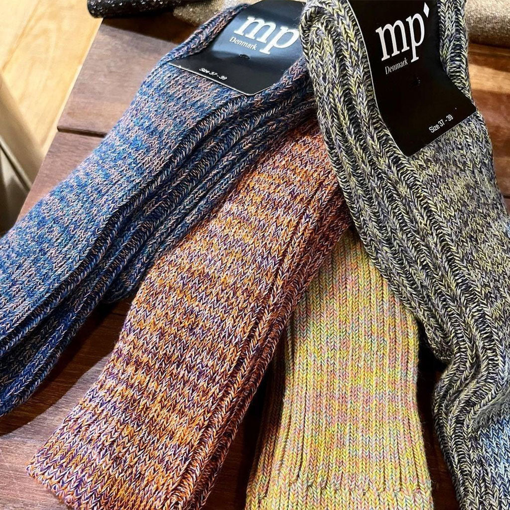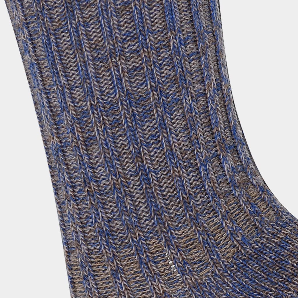 Solide Socken aus einer strapazierfähigen Kombination aus Wolle und Baumwolle mit einem mehrfarbigen Melange-Effekt. Die Rippenstrickstruktur und der elastische Strumpfrand sorgen dafür, dass die Socke bequem am Fuss sitzt. Verstärkte Ferse und Spitze für gute Haltbarkeit und eine weiche und glatte Naht an der Zeheninnenseite für Komfort.