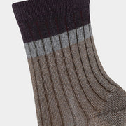 Hübsche mehrfarbige Rippstrick-Socken mit Glitzer. Diese festlichen und femininen Socken haben eine wirklich gute Passform und einen Gummizug am Rand, der dafür sorgt, dass die Socken den ganzen Tag an Ort und Stelle bleiben.