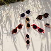 Die runde und leichte Darla Sonnenbrille schützt Kinderaugen und ist gleichzeitig cool und bequem. Die Sonnenbrille ist aus haltbarem, recyceltem Polycarbonat gefertigt und hat Federscharniere, damit sie nicht so leicht bricht. Mit glänzenden Details wie einem silbernen Logo an der Seite und verschiedenen matten oder glänzenden Oberflächen zur Auswahl kann man damit ganz einfach einen individuellen Look betonen.