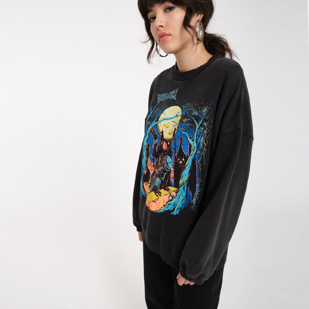 Schwarzes Sweatshirt in Erwachsenengrössen mit Kunstdruck von Max Sherman.
