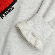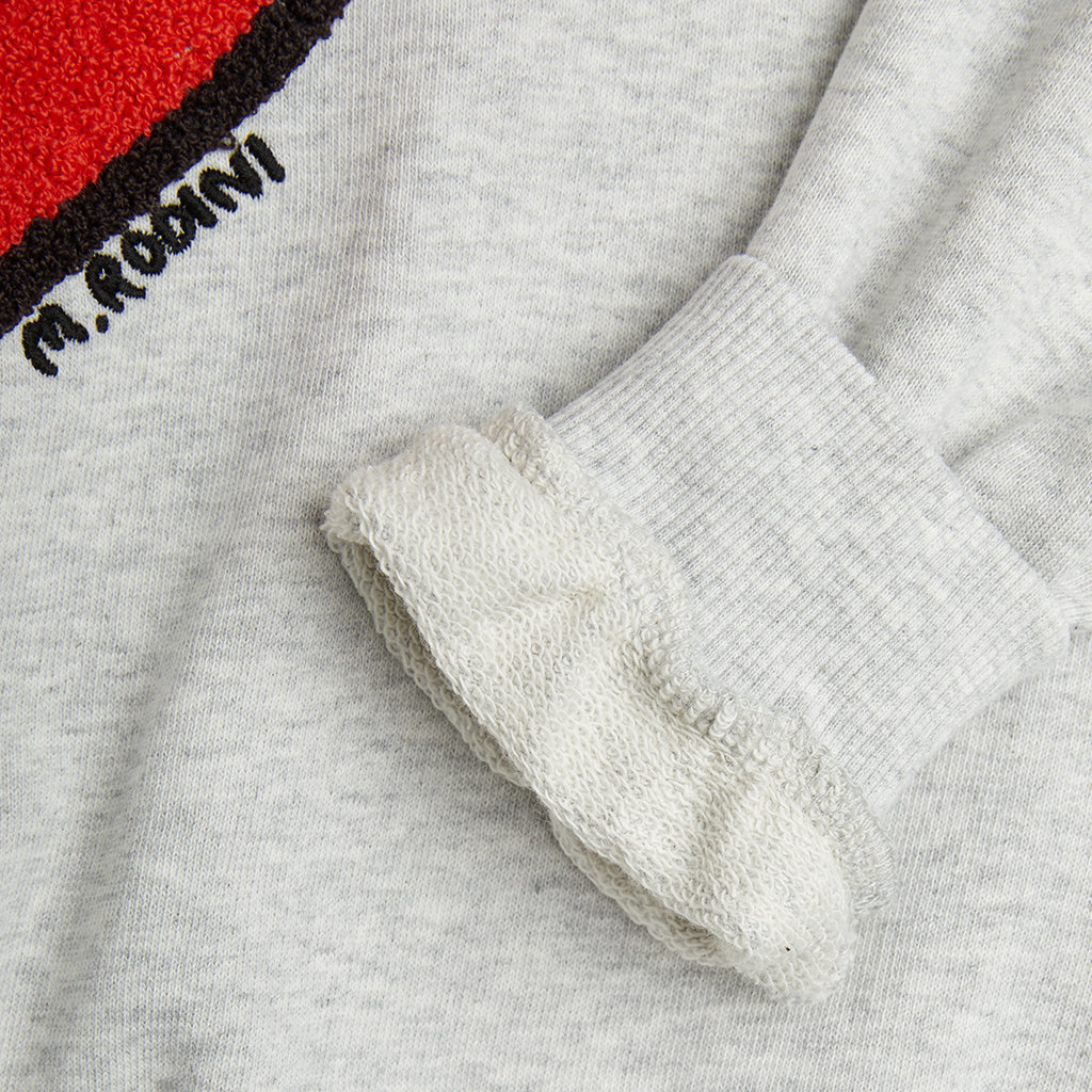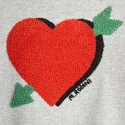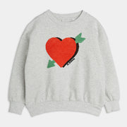 Grau-meliertes Mini Rodini Sweatshirt mit grossem, roten Herz. Hergestellt aus 100% GOTS-zertifizierter Bio-Baumwolle. Das Sweatshirt hat eine weiche, gebürstete Innenseite und leicht überschnittene Schultern für eine entspannte Passform sowie Rippbündchen am Hals, an den Ärmelenden und am unteren Saum.