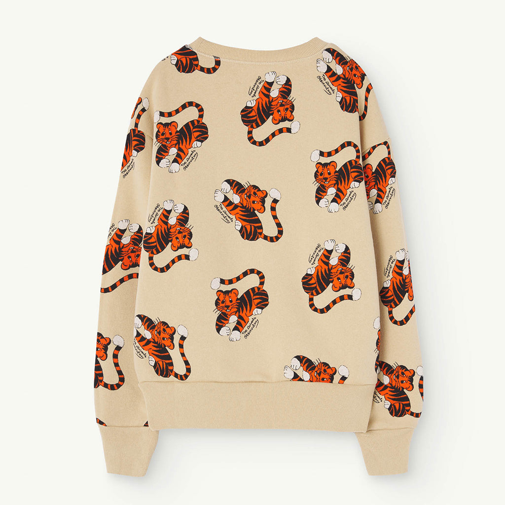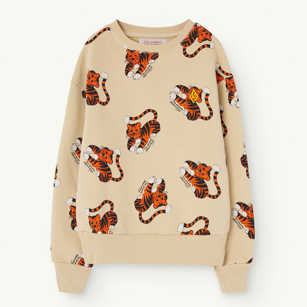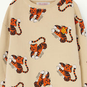 Beiges Sweatshirt von The Animals Observatory mit verspieltem Allover Tiger Druck.