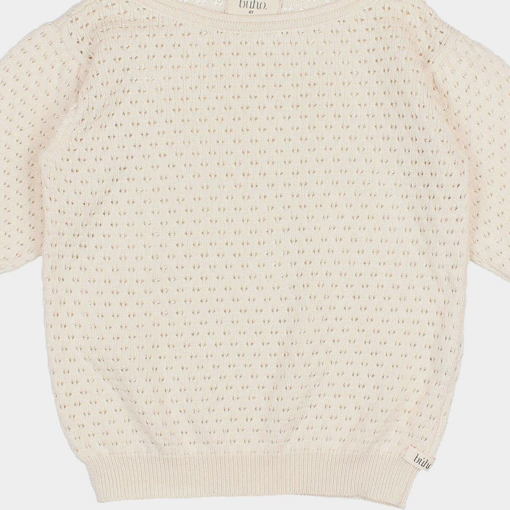Zarter Halbarm-Sommerpullover aus geripptem Trikot.