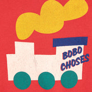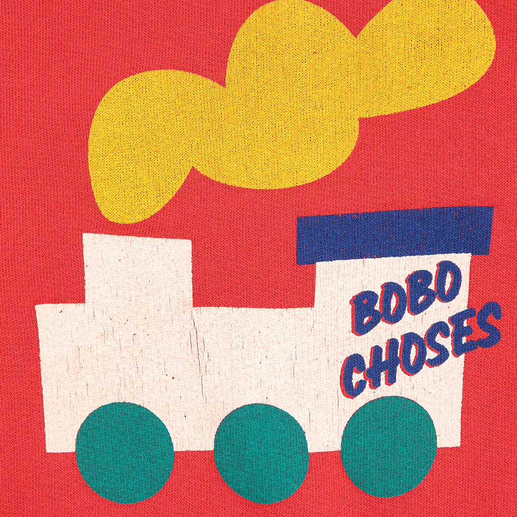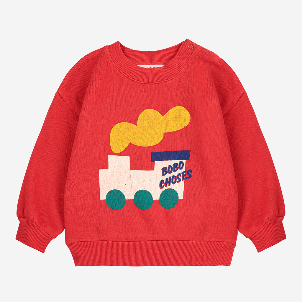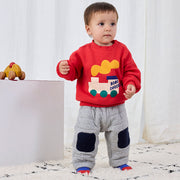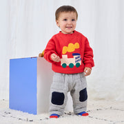 Knallrotes Baby Sweatshirt mit farbigem Tschutschubähnli.