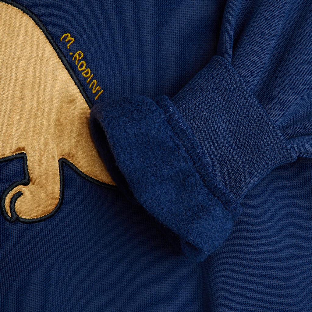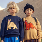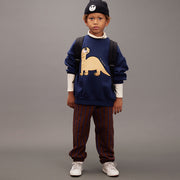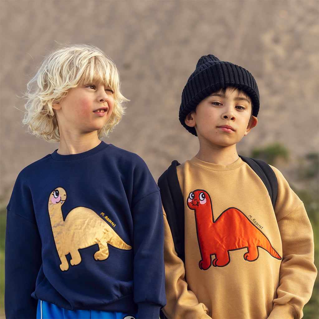 Sweatshirt aus 100 % GOTS-zertifizierter Bio-Baumwolle. Entworfen für eine lockere Passform mit überschnittenen Schultern und gerippten Bündchen. Verziert mit einem grossen Satin-Dinoaufnäher.