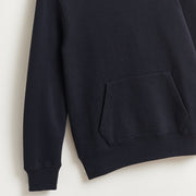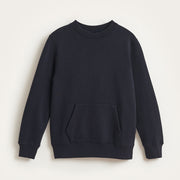 Schwarzes Sweatshirt mit Rundkragen und Kängurutasche.