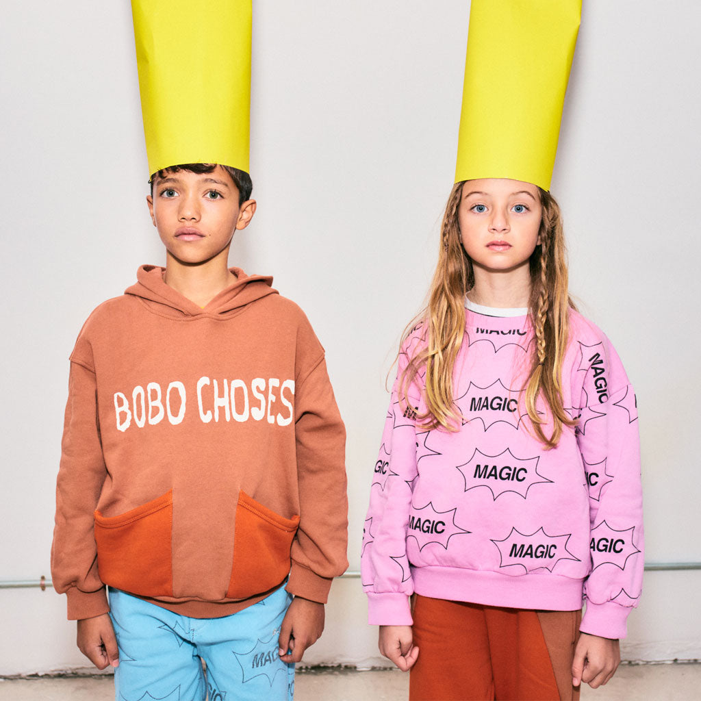 Schliesst die Augen und stellt euch die bekannten Märchen einmal anders vor. Die Bobo Choses AW24-Kollektion «Once Upon a Time» macht genau dies und ermutigt die Kinder, die Märchen der Gebrüder Grimm neu zu erfinden. Charakteren und Schauplätze zu mischen und neue Geschichten zu erdenken: Geschichten vom guten, lieben Wolf, vom bösen Prinzen, der schönen Hexe oder dem rechtschaffenen Piraten.