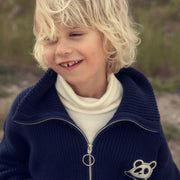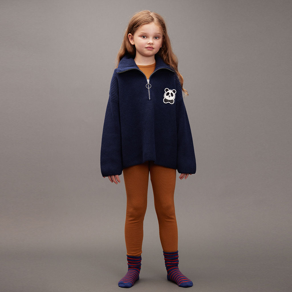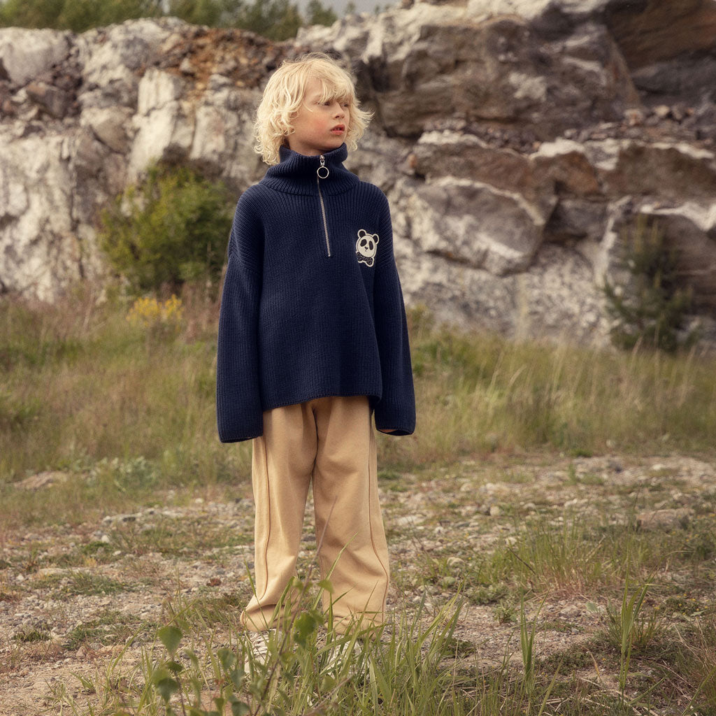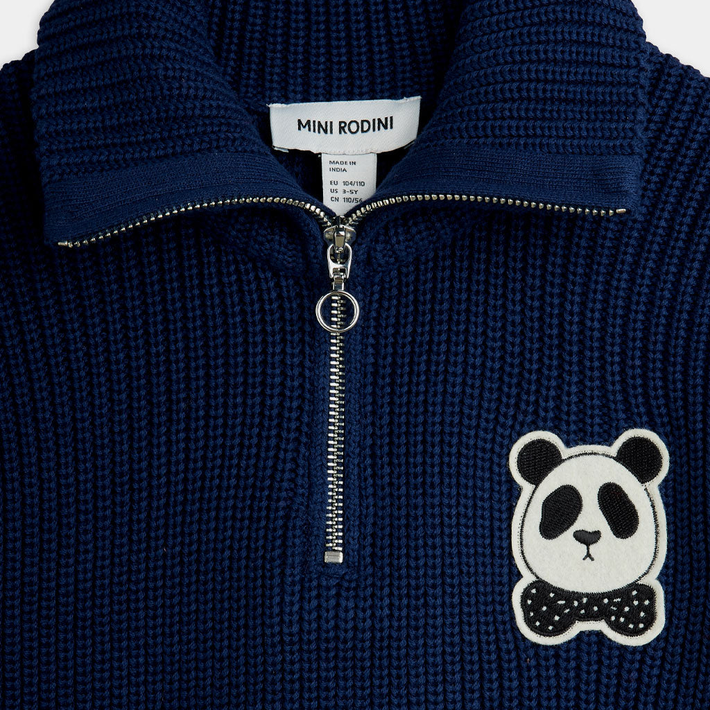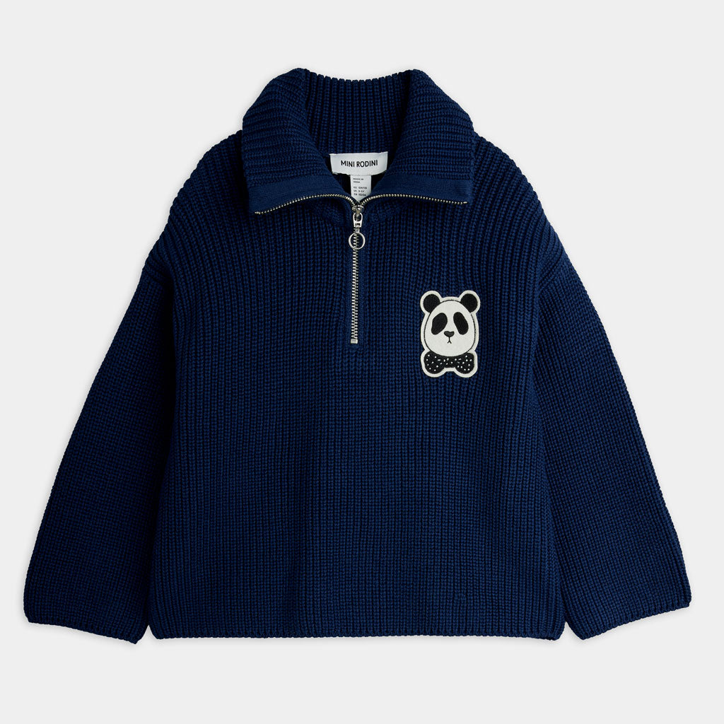 Bequemer Strickpullover mit Mini Rodinis ikonischem Panda-Aufnäher aus 100 % GOTS-zertifizierter Bio-Baumwolle. Entworfen in einer lockeren Passform mit halbem Reissverschluss.