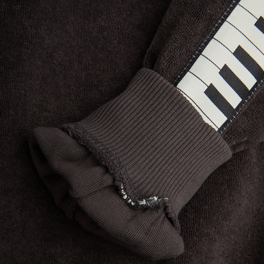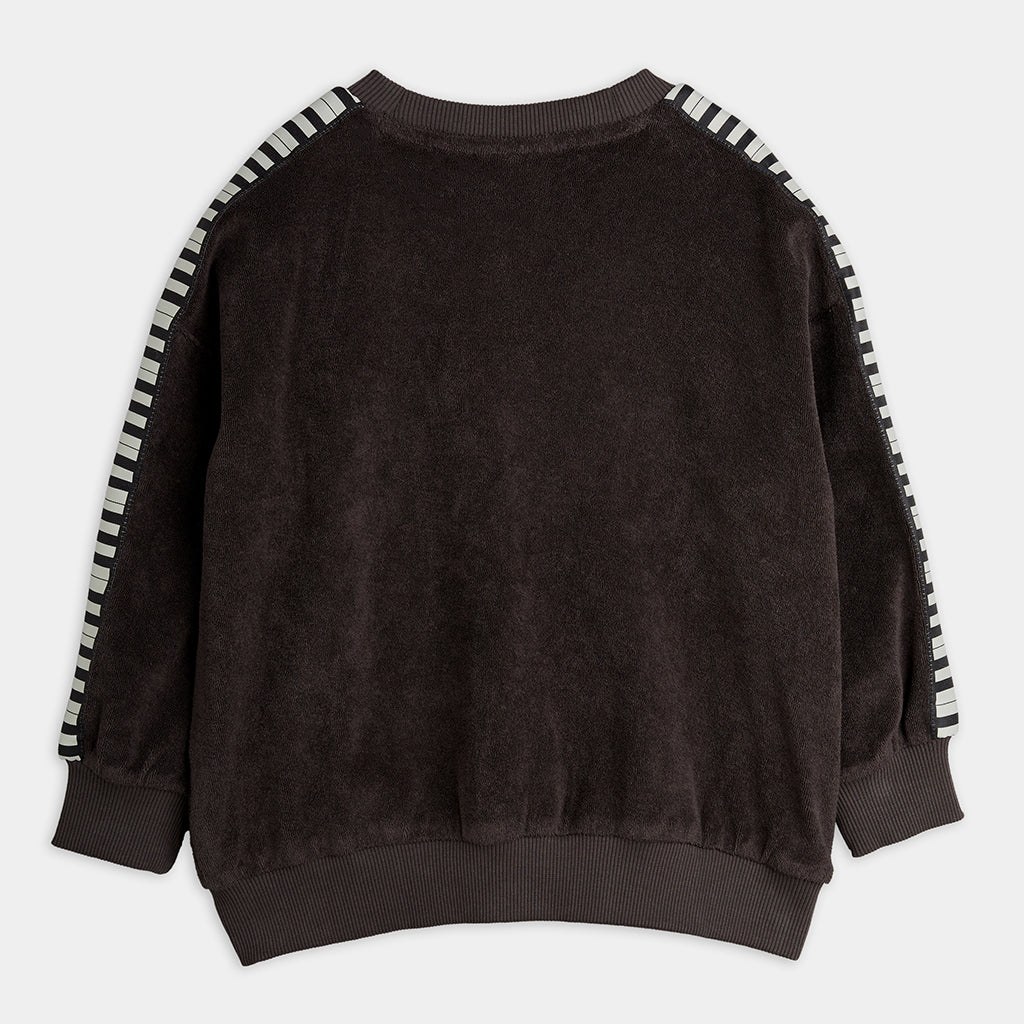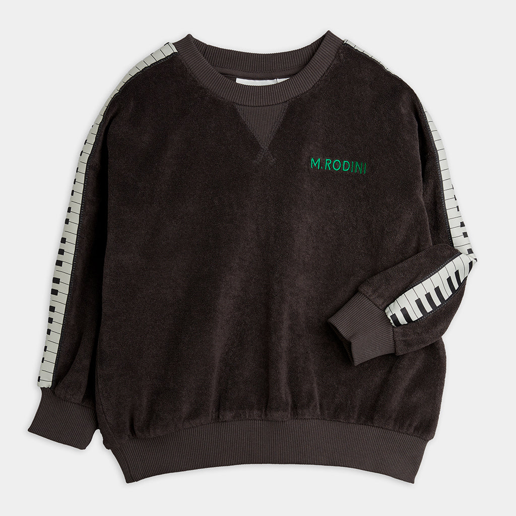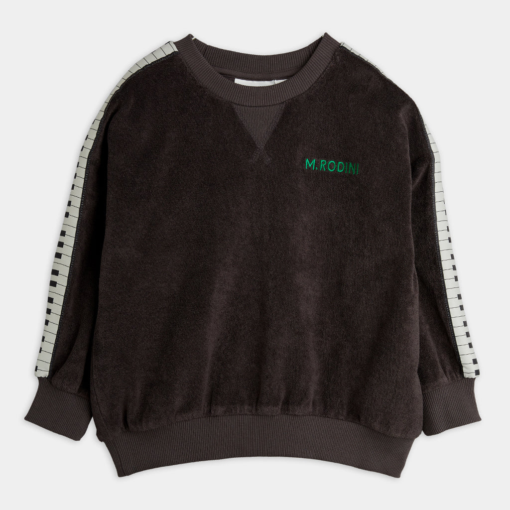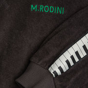 Kuscheliges, schwarzes Terry Sweatshirt mit Klaviertastur an den Ärmeln.