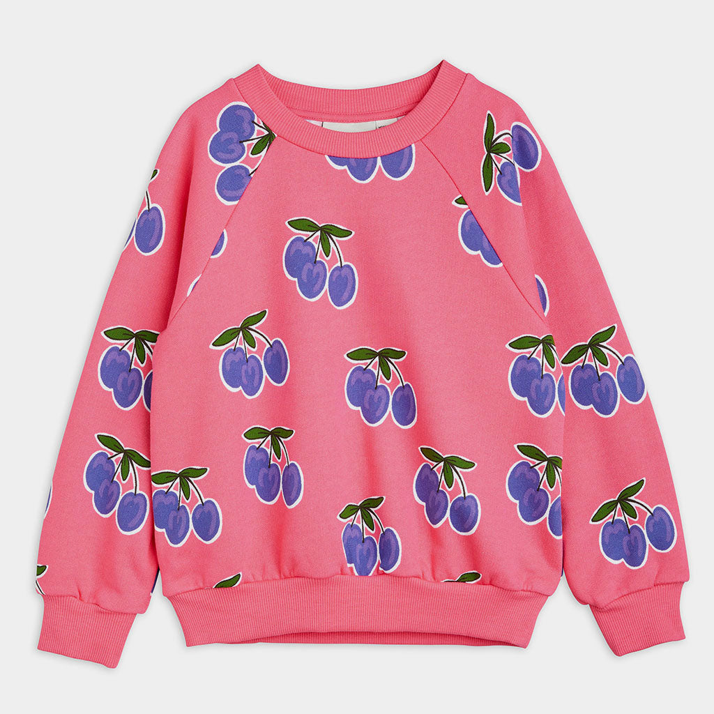 Pinkes Sweatshirt aus Bio-Baumwolle mit saftigem Pflaumen Print.