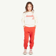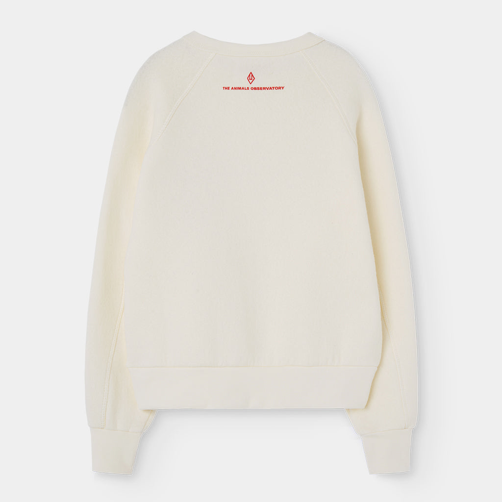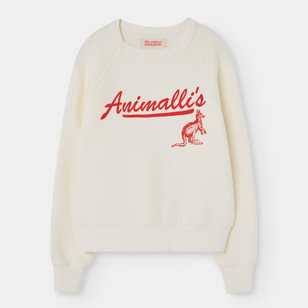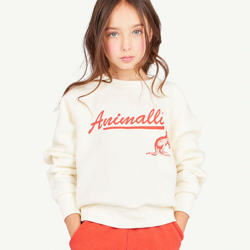 Weisses Sweatshirt von The Animals Observatory mit rotem Animmalis Schriftzug und Känguru Print vorne.