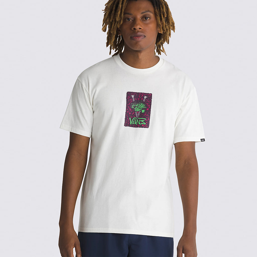 Cremefarbenes Vans T-Shirt in Erwachsenengrössen mit Print vorne.