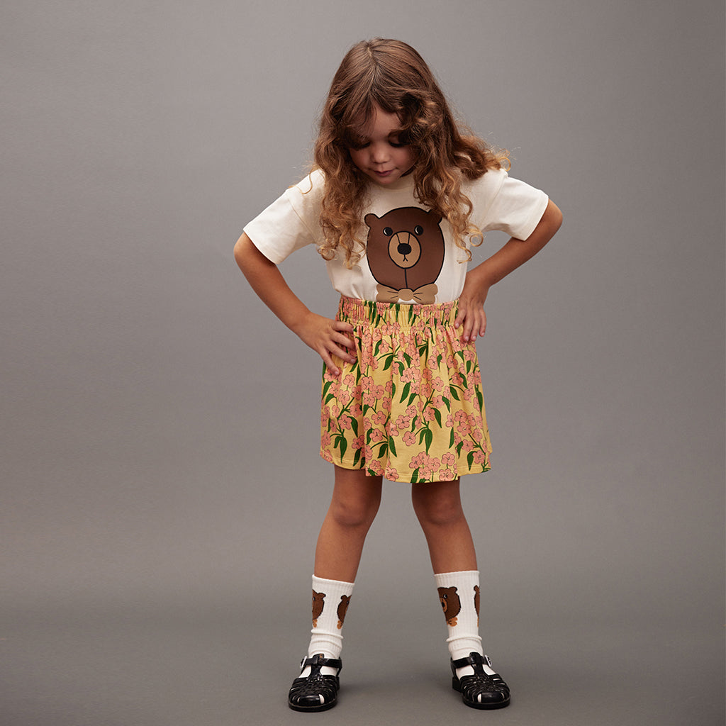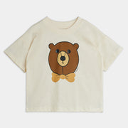 Kurzarm-T-Shirt aus GOTS-zertifizierter Bio-Baumwolle mit einem Hauch von Stretch, grossem Bärenprint und geripptem Kragen.