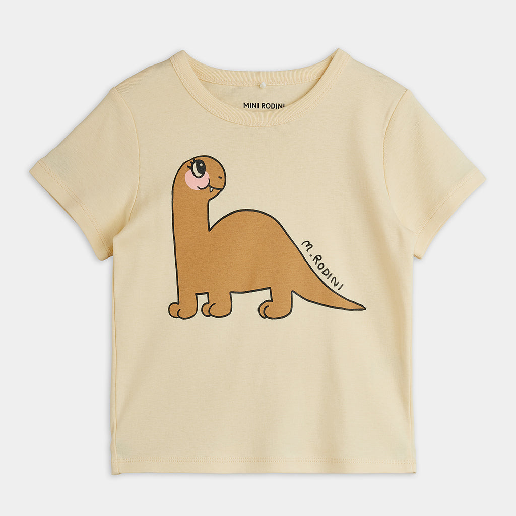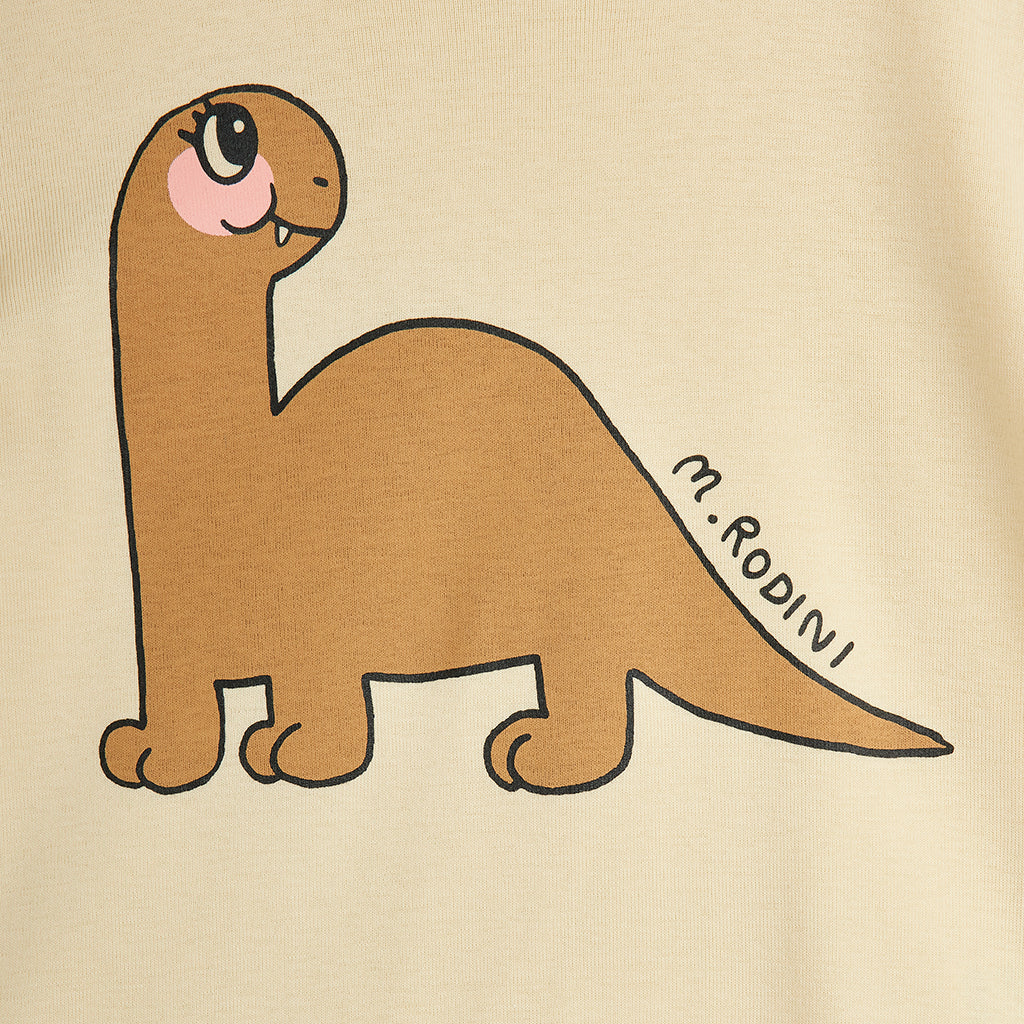 Normal geschnittenes T-Shirt aus 100 % GOTS-zertifizierter Bio-Baumwolle. Mit geripptem Kragen und überschnittenen Schultern und einem grossen Dino.