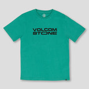 Knallgrünes T-Shirt mit schwarzem Volcom Stone Aufdruck.