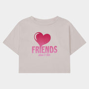 T-Shirt mit Rundhalsausschnitt, gesteppt, geradem, kurzem Schnitt und Druck auf der Vorderseite.