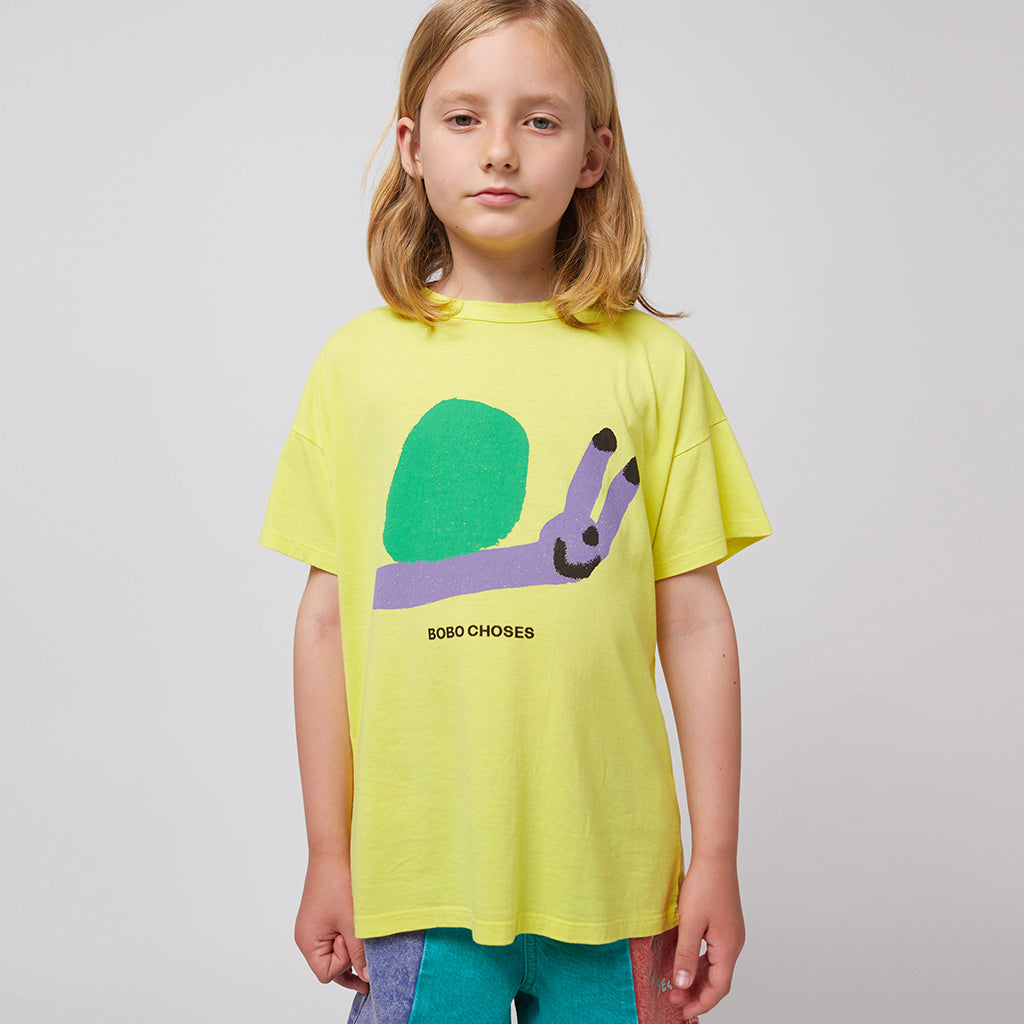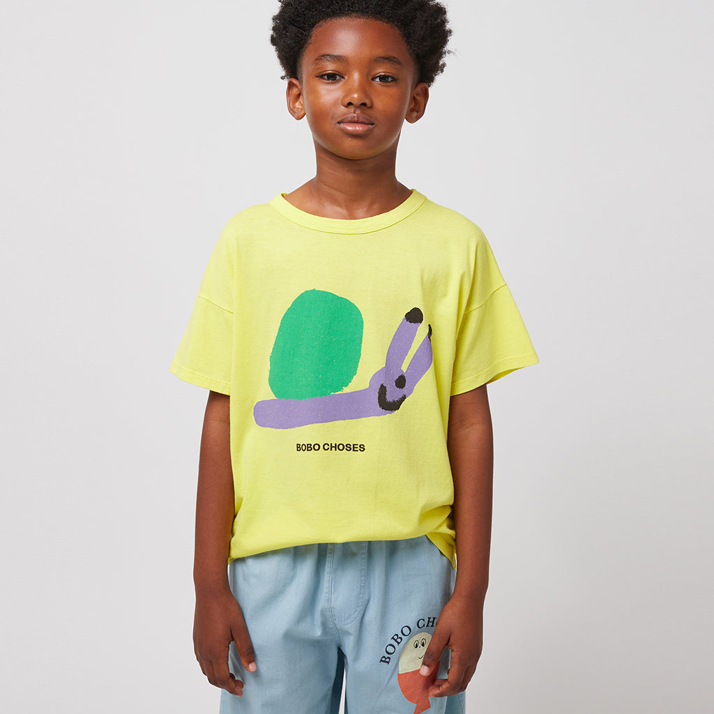 Hellgelbes Bobo Choses Sweatshirt "Funny Snail" aus GOTS zertifizierter Bio-Baumwolle.