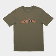 Armeegrünes Kinder Kurzarm-T-Shirt von Volcom mit orangem Volcom Schriftzug. Volcom Shirts sind sowohl in der Schule, als auch bei den Grosseltern oder im Skatepark immer genau das richtige Kleidungsstück. Die robuste Qualität und der langhaltende Siebdruck machen Volcom Shirts zu einem Dauerbegleiter und wer weiss, vielleicht können die kleinen Geschwister irgendwann dieses Erbe antreten. Also, zugreifen und viele kleine Volcomianer einkleiden.